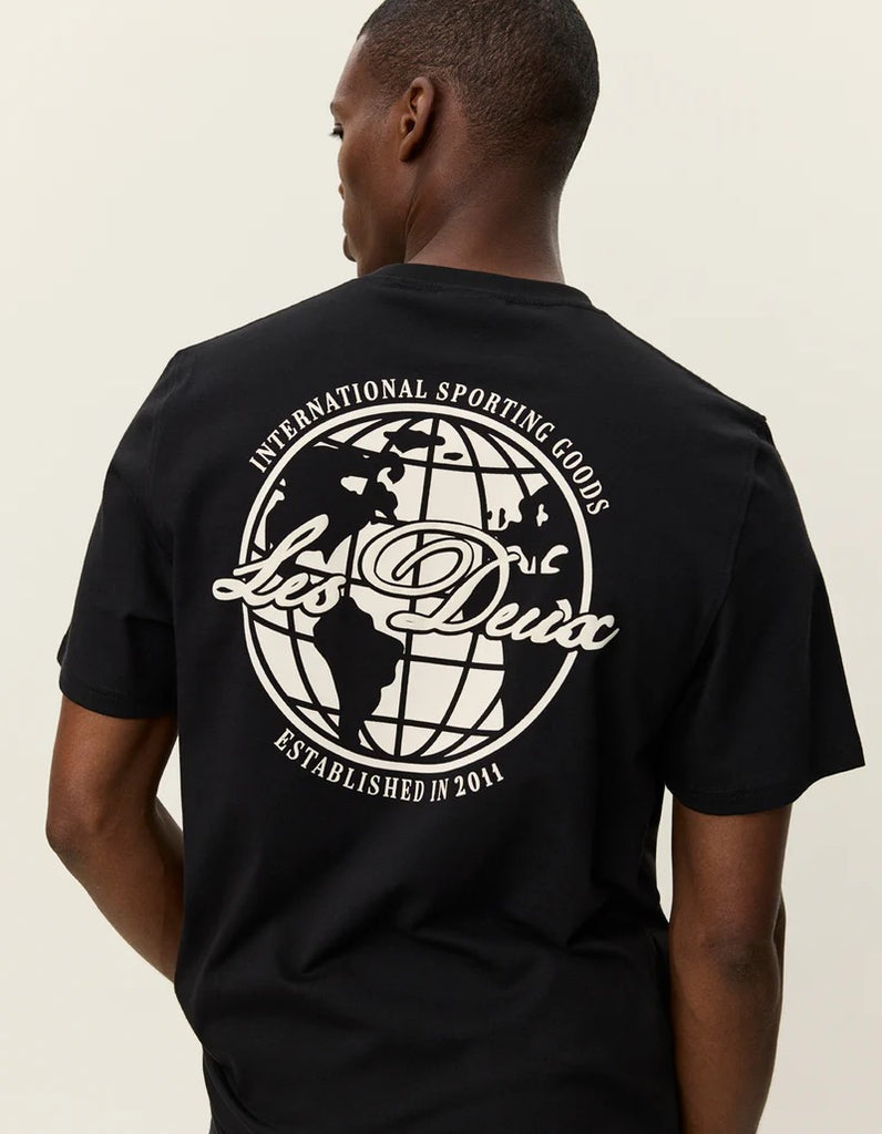 Le t-shirt Ben Globe a une coupe regular en coton biologique et orné d'imprimés saisonniers sur la poitrine et le dos.