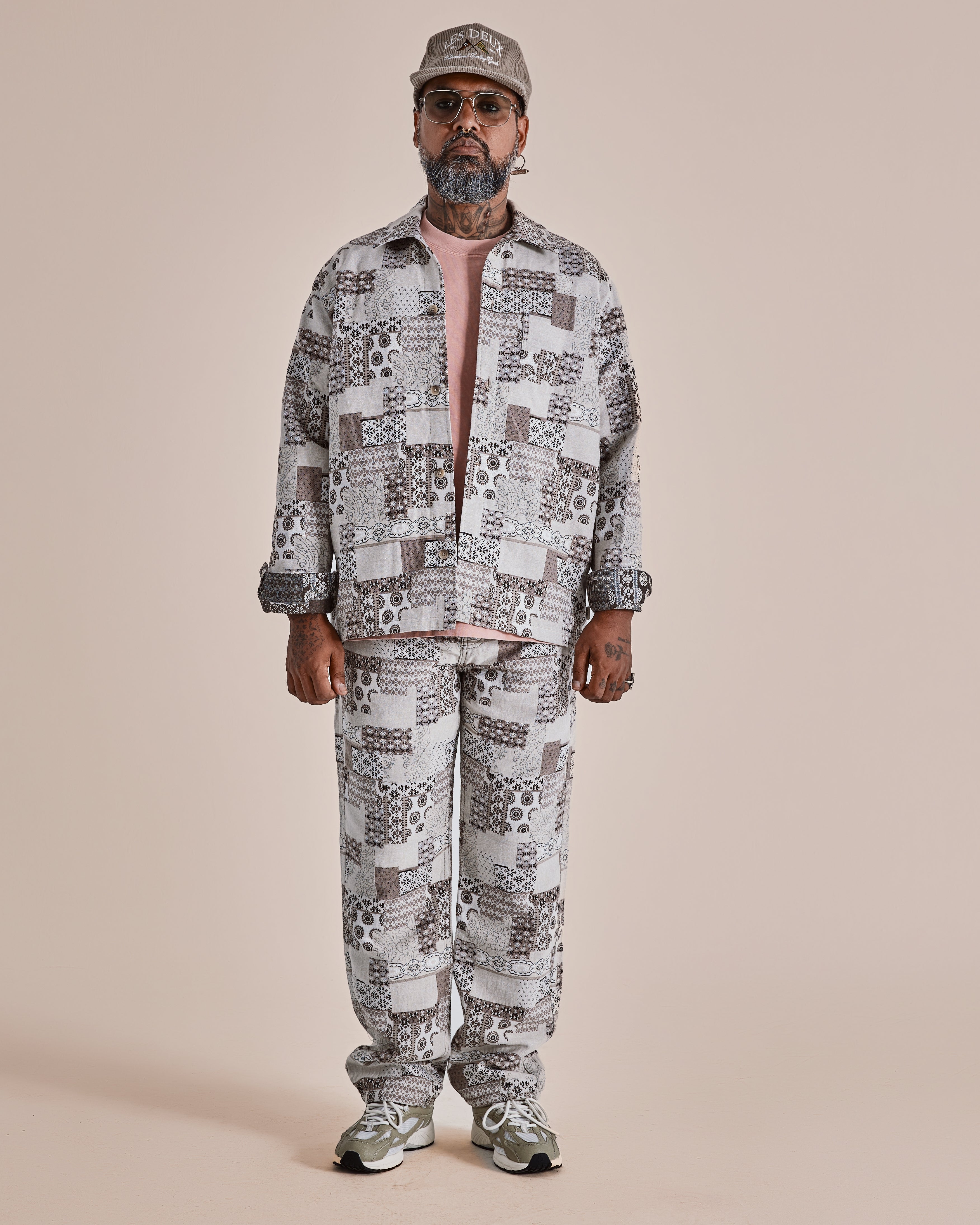 Pantalon fuselé à 5 poches fabriqué en jacquard patchwork texturé. Fini avec une braguette zippée, des détails en denim classiques et une silhouette décontractée et décontractée.
