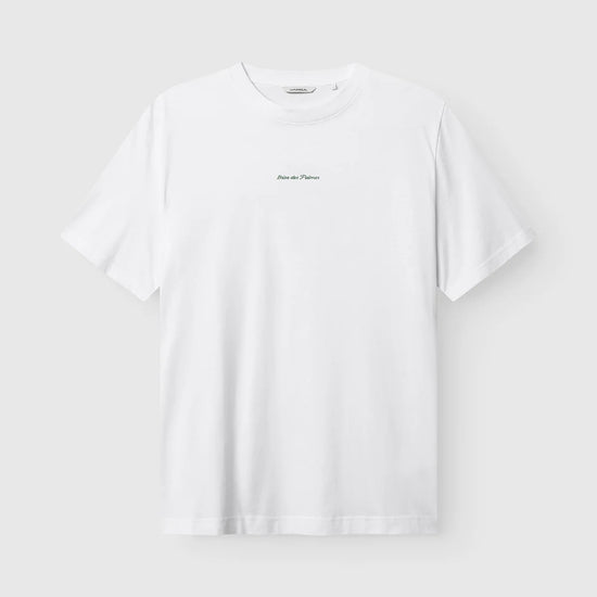 Un T-shirt de coupe régulière fabriqué en jersey simple doux en coton biologique, conçu pour être porté toute l'année. Doté d'un col rond propre et d'une finition raffinée, il garde la silhouette minimale et polyvalente. La broderie sur le devant et une impression à l'arrière expriment l'esprit de la collection SS26 - enracinée dans l'identité et la communauté.