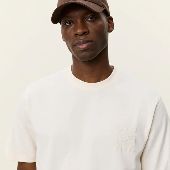 Un t-shirt à coupe regular orné d'un imprimé en relief ton sur ton sur la poitrine et d'un large imprimé contrastant au dos pour un look graphique épuré.