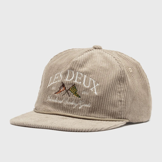 La casquette Les Deux Ivy League Corduroy Cap est une snapback fabriquée en velours côtelé de coton doux. Le devant texturé présente des motifs universitaires brodés, tandis que la lanière réglable en cuir végétalien à l'arrière assure un ajustement parfait.