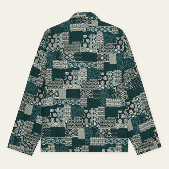 Veste coach à motifs confectionnée en coton patchwork jacquard pour un look texturé et affirmé. Présente une fermeture à boutons et des poches passepoilées.