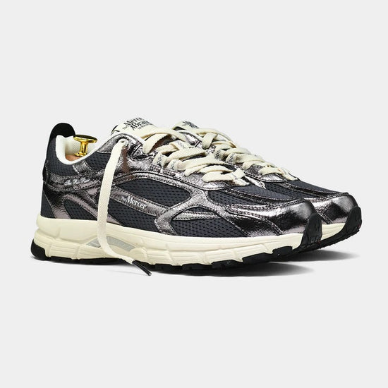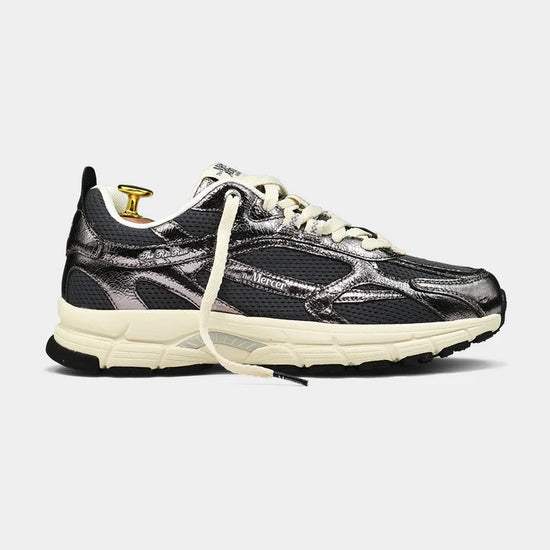 L'anthracite craquelée Mercer Re-Run, fabriquée à partir de cuir nappa "caquelé" fissuré souple de qualité supérieure avec un effet métallique éblouissant. Disponible en 5 teintes. Complété par une maille de taille moyenne pour un effet sportif mais chic et des lacets plats en coton biologique. L'attraction réside dans le look et la sensation vintage mais sportifs et modernes pour lesquels la marque Mercer est connue.