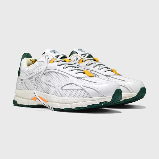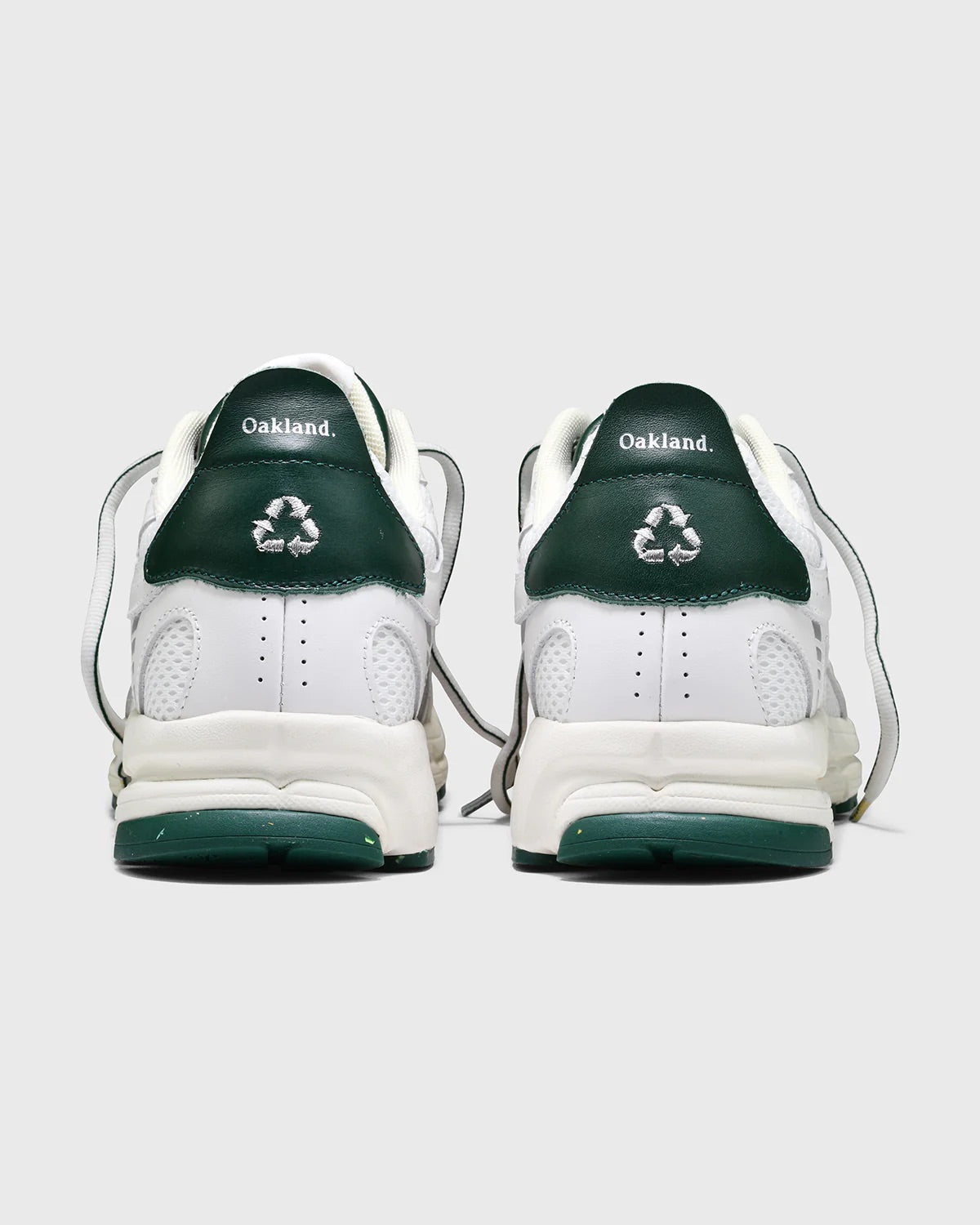Inspiré par les équipes de baseball des villes légendaires des États-Unis, chaque style a sa propre ville marquée sur le talon en argent. Tige en cuir recyclé avec maille fabriquée à partir de bouteilles en plastique recyclées, œillets Silver Mercer et lacets plats en coton.