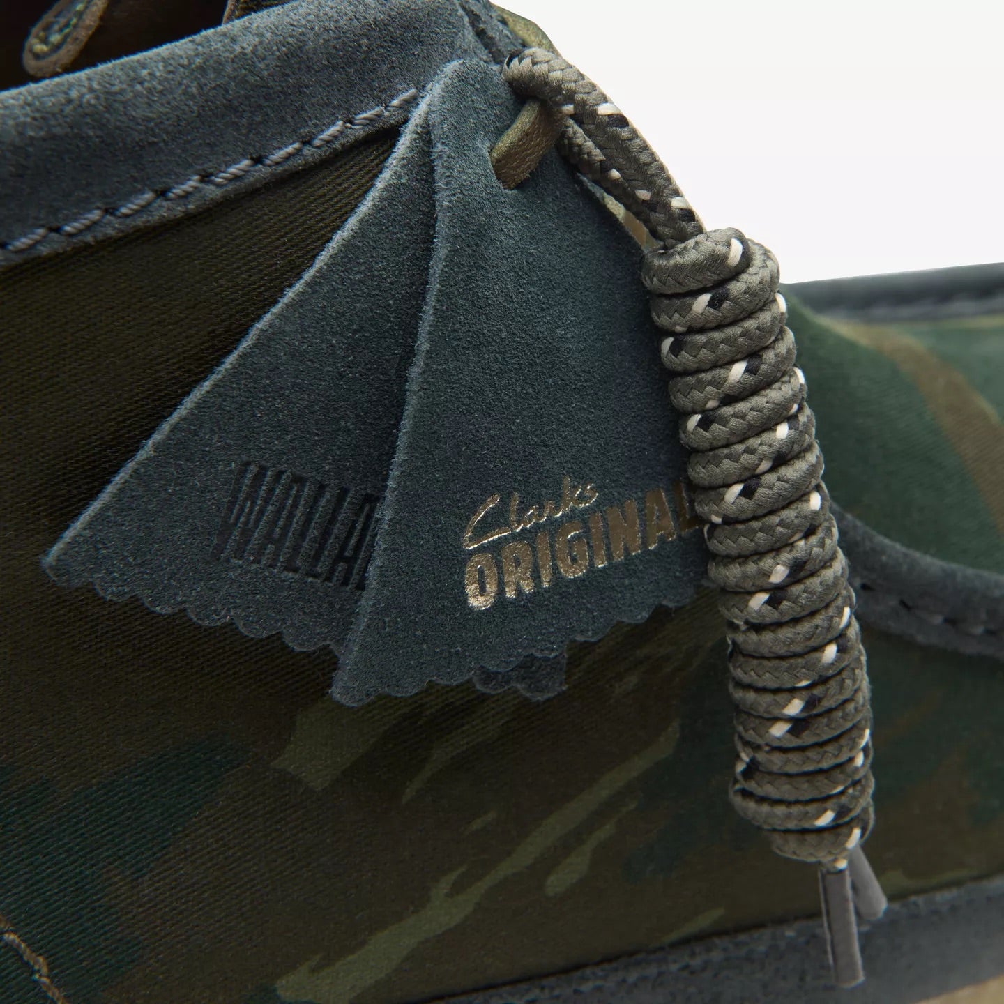 Hommage au quartier Harajuku de Tokyo, notre édition spéciale Wallabee Boot présente une tige de camouflage inspirée de la scène de la mode perturbatrice Urahara du district. Considéré comme une force motrice derrière la culture du streetwear d'aujourd'hui, le mouvement est défini par ses nuances utilitaires - une esthétique que nous avons fait écho avec les tiges textiles TEK WAX produites par le pourvoyeur militaire britannique Millerian. Pour compléter le look, nous avons inclus un choix de lacets noirs plats ou une paire de lacets inspiré de la randonnée.
